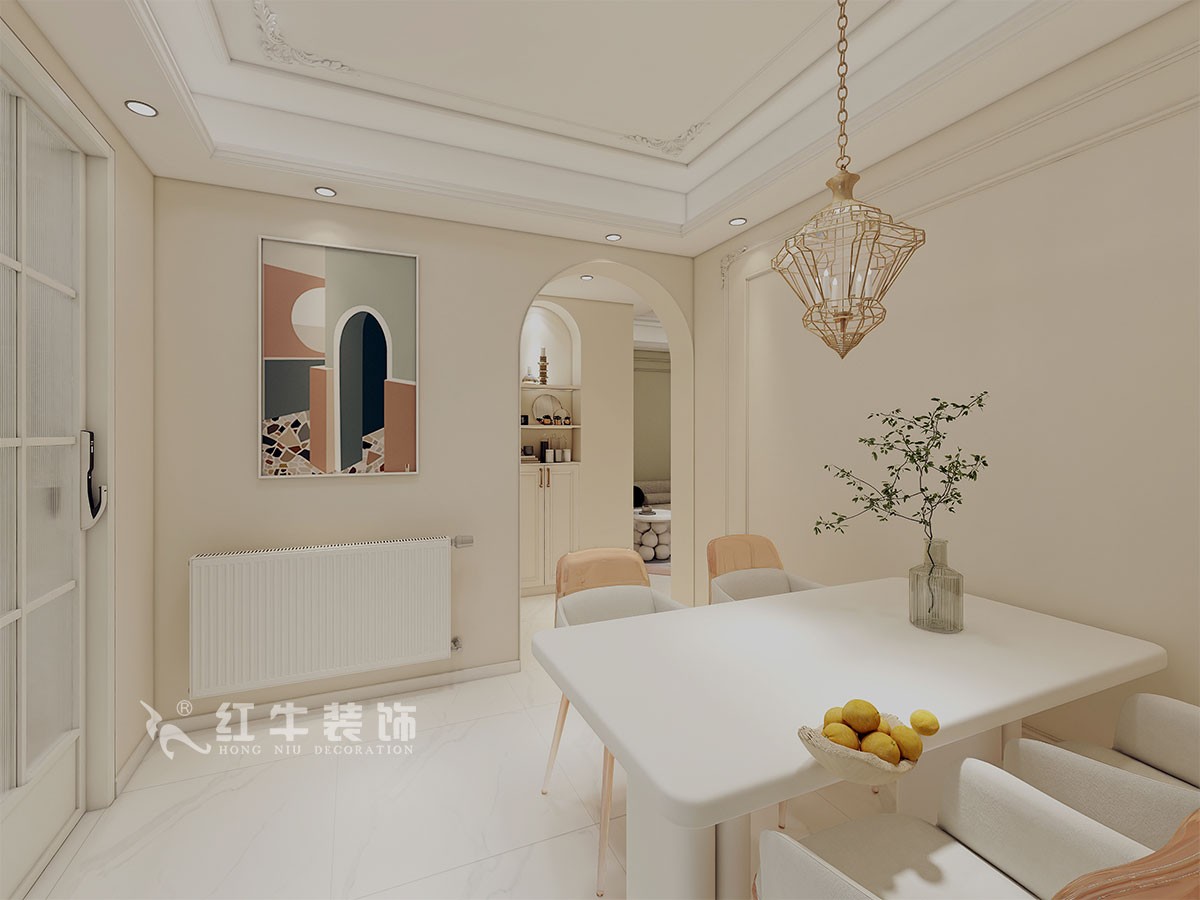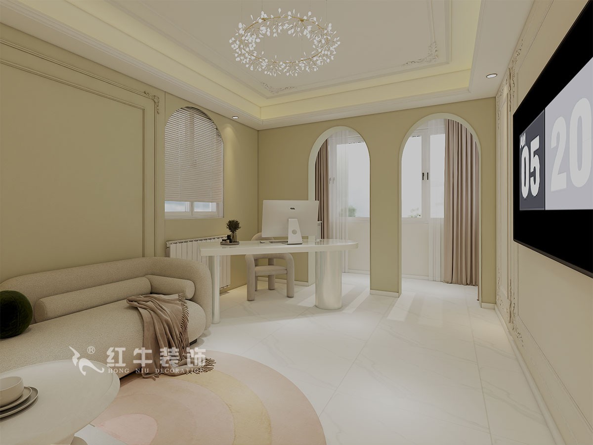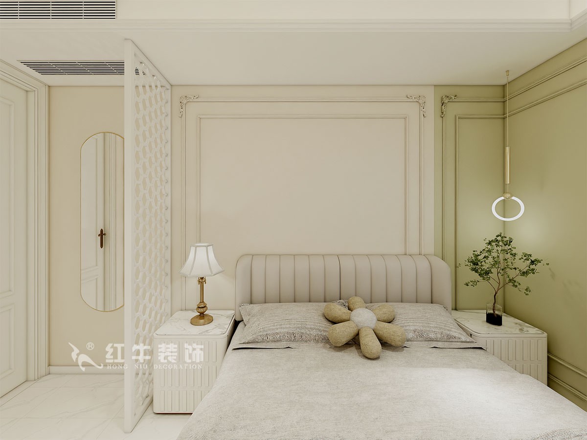 本案是本案客戶女兒回國臨時居住,以法式奶油風(fēng)定義,網(wǎng)紅牛油果綠加上汝窯色,調(diào)節(jié)出歡快溫馨的效果,頂墻面線條增加立體層次感,設(shè)計上背景采用牛油果綠加上暖色的搭配,使空間看起來溫馨自然,利用原結(jié)構(gòu)的特點制作出三個圓弧,交相呼應(yīng)。
