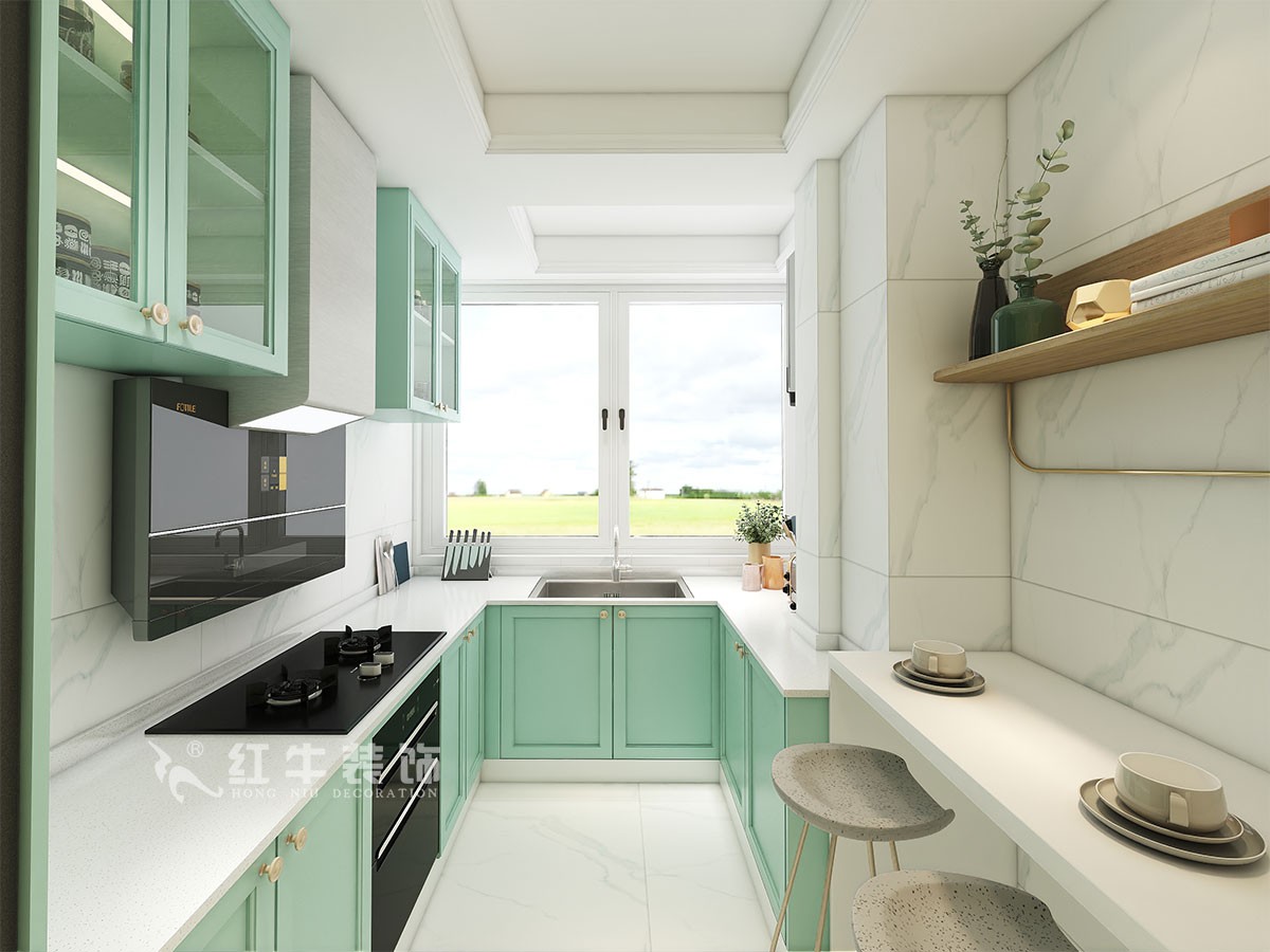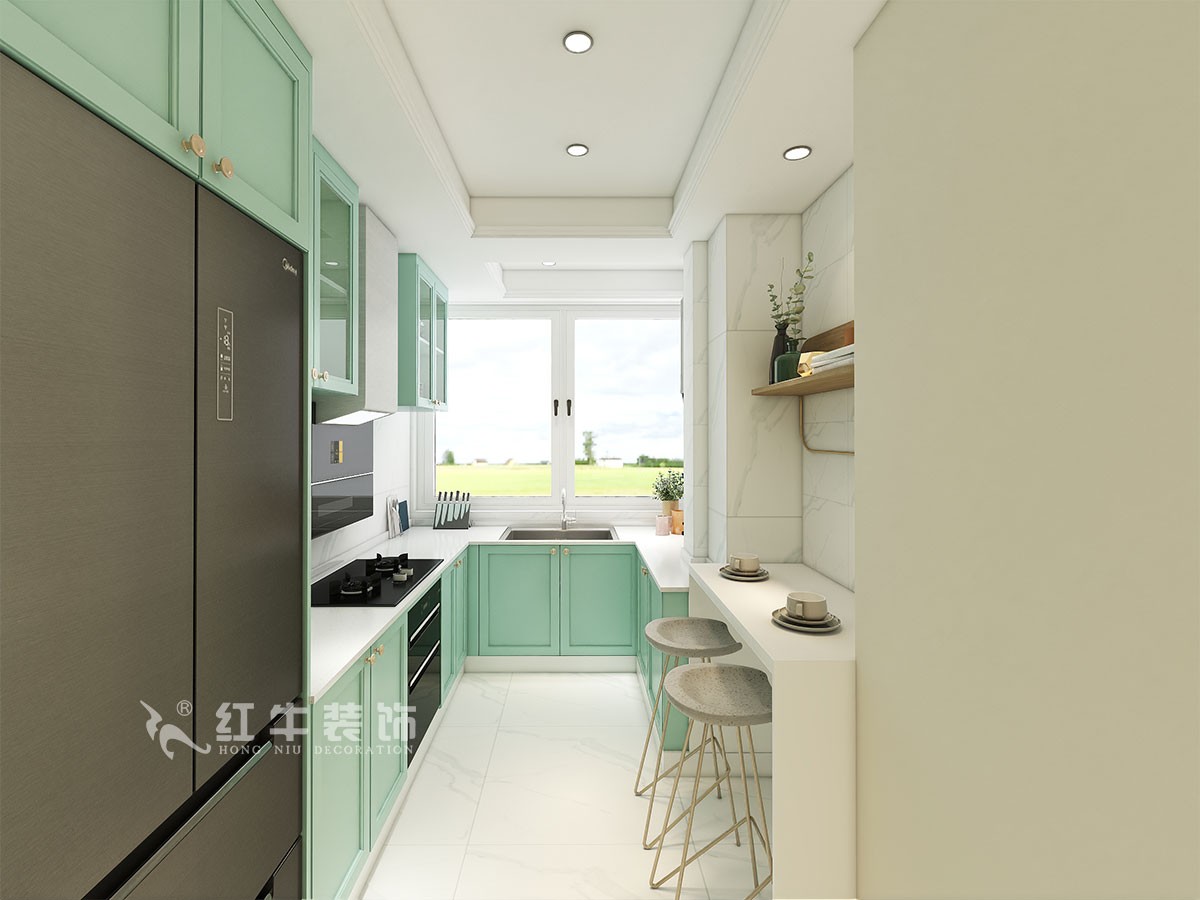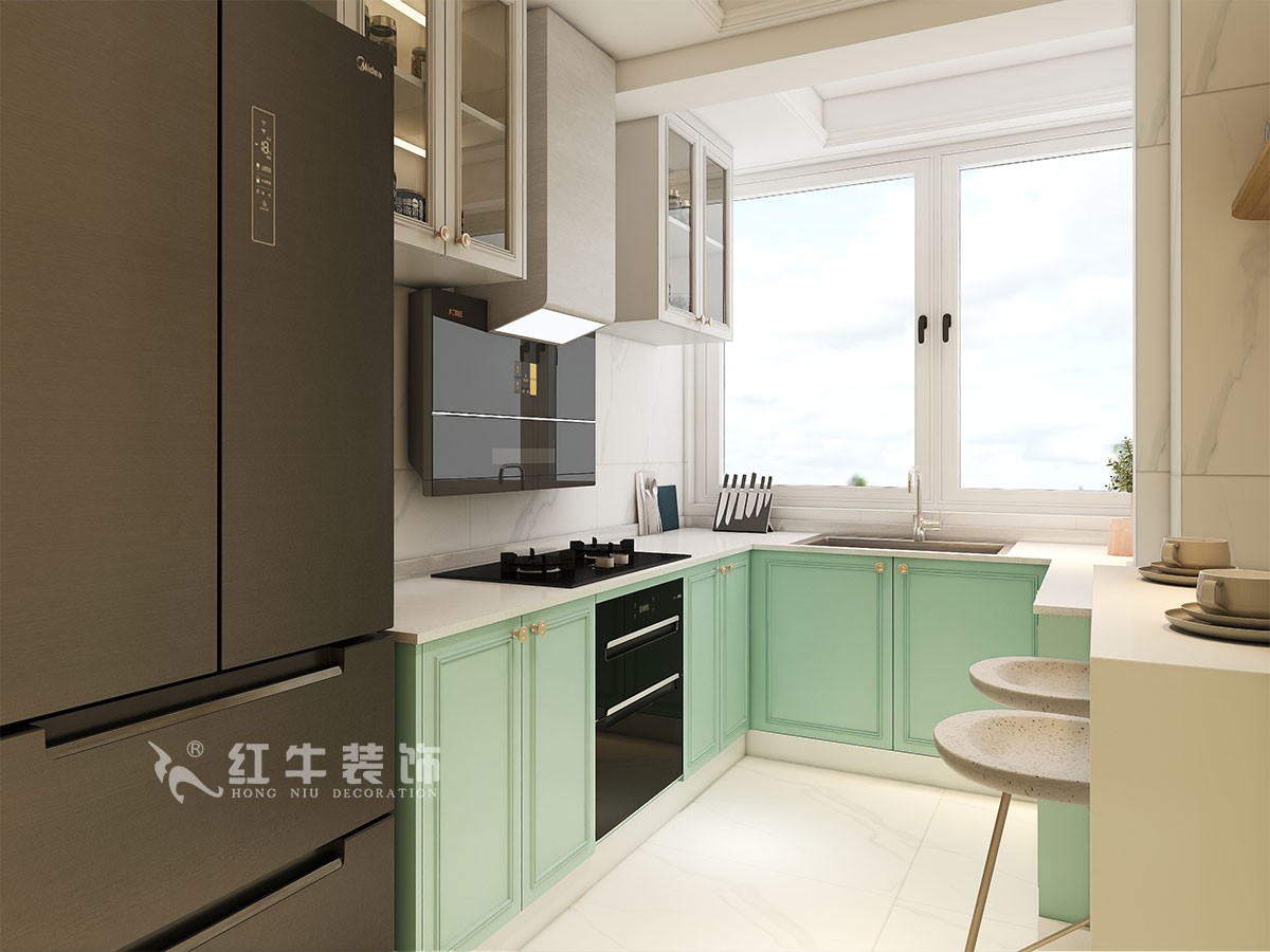 本案是本案客戶女兒回國臨時居住,以法式奶油風(fēng)定義,網(wǎng)紅牛油果綠加上汝窯色,調(diào)節(jié)出歡快溫馨的效果,頂墻面線條增加立體層次感,設(shè)計上背景采用牛油果綠加上暖色的搭配,使空間看起來溫馨自然,利用原結(jié)構(gòu)的特點制作出三個圓弧,交相呼應(yīng)。