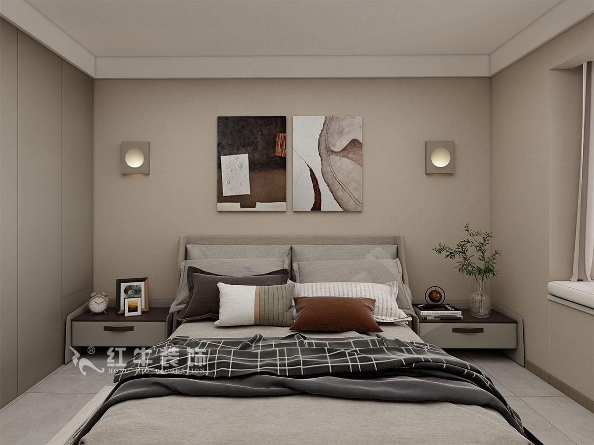 臥室說(shuō)明:搭配大面積的咖色定制衣柜,床頭的光源以多種形式呈現(xiàn),既滿足不同燈光需求,又恰到好處地起到了裝飾效果,使整體臥室空間呈現(xiàn)柔亮、溫柔的舒適狀態(tài)。