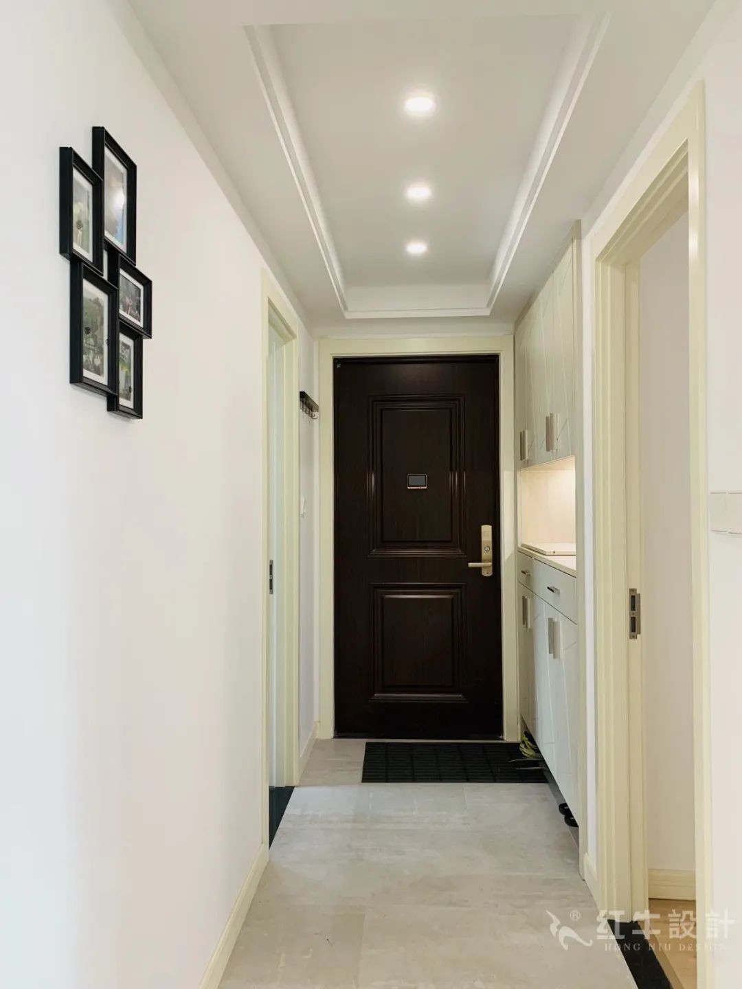 裝修過程中,可以看到紅牛裝飾的專用保護(hù)膜,從電梯口一直延伸到門口。