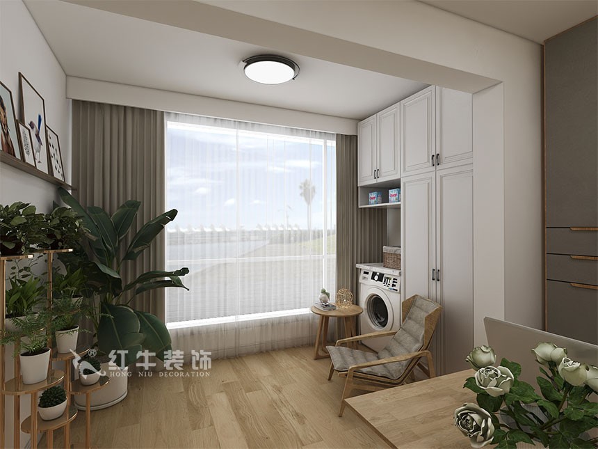 陽(yáng)臺(tái)實(shí)用性和休閑性兼具,一側(cè)用于洗衣和收納,一側(cè)搭配了各式各樣的綠植,讓家變得更加清新有活力。中間還配備小茶幾和躺椅,悠閑的午后,在這里曬曬太陽(yáng)是不錯(cuò)的選擇。