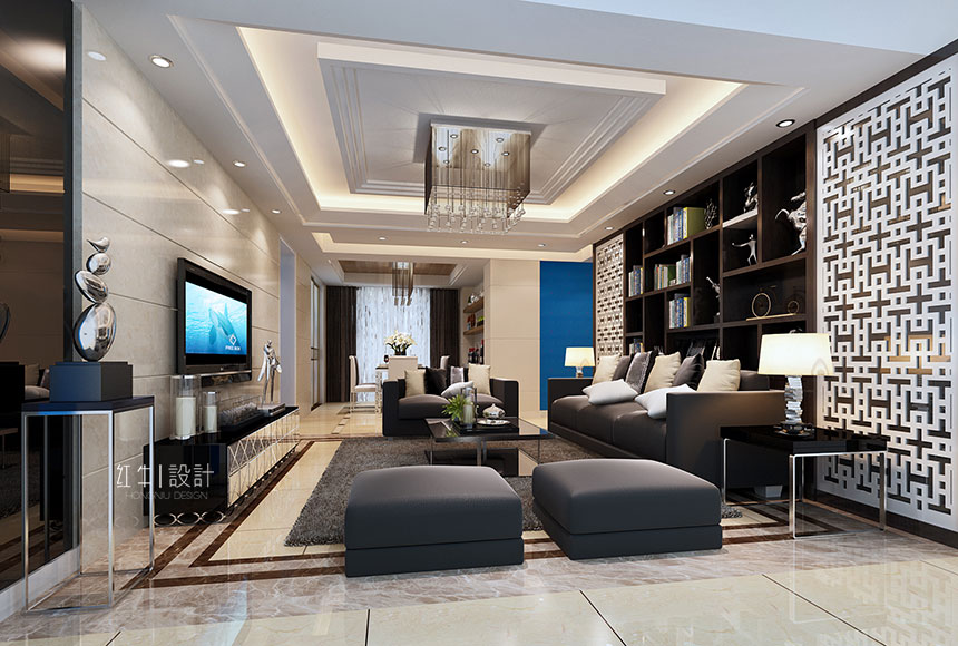 南京鷺島榮府140平米現(xiàn)代中式風格裝修 -